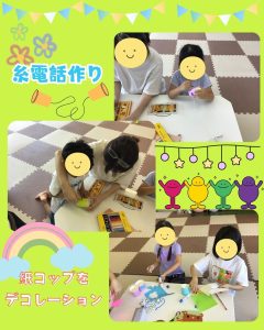 紙コップに好きな絵やシールでデコレーションし、糸を通したらあっという間に完💫 最初は大きな声で話して「きこえちゃった~」と笑っていましたが、だんだんコツを覚え「先生~きこえる~」と可愛い小声で話すようになりました🤩
