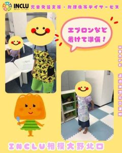 始まる前から、とても楽しみにしている様子だった子どもたち😊 自分たちでエプロンと三角巾とマスクをつけて準備をして、職員からの作り方の説明もしっかりと聞いていました♪
