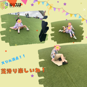 さらに、公園の目玉でもある芝滑りにも挑戦しました。