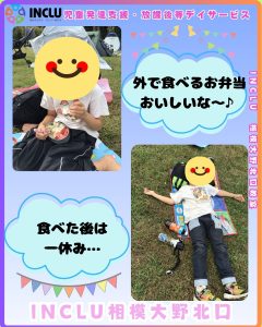 公園の原っぱで、秋の陽気を感じながら、みんなで一緒においしいお弁当を食べました😋