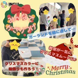 まずはクリスマスらしく、みんなで教室を飾りつけしよう✨️✊ ̖́-