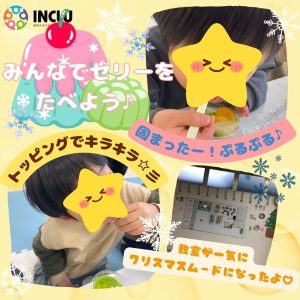 ということで、みんなでクリスマスゼリーをつくりました♪この日は多賀教室とかみね教室との合同イベントです⭐️