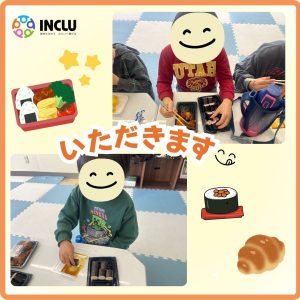 教室に戻ってみんなで「いただきます✨」をして食べます♬「納豆好きだから納豆巻きにしてみたよ!」「もう全部食べちゃった!」と、自分の好きなものを買えて大満足な子どもたちでした💫