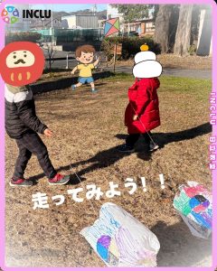 簡単だけど楽しめた凧作りと凧揚げでした。スタッフも一緒に走ったり凧を持ち上げたり子供たちと楽しみました。お正月らしい季節を感じる瞬間でもありました。