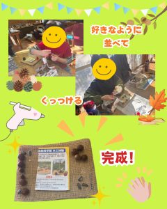 今回のイベントでは自然物に触れ季節を感じ作品作りを通すことで想像力や豊かな感性を育むことが出来ました🌱