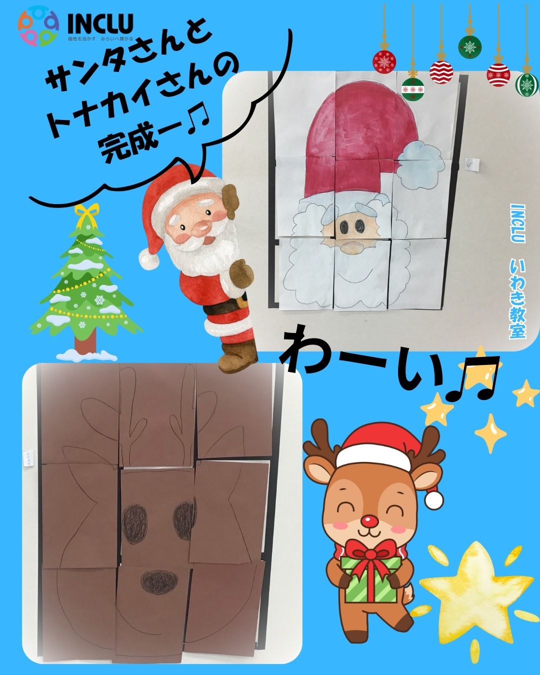 最後にみんなが一生懸命に完成させたサンタさん🎅とトナカイさんです🌟