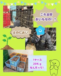 見学ではまず、収穫したさつまいもを機械で水洗いする工程を見せていただきました。大量の芋が次々と洗われていく様子に子どもたちは目を輝かせながら見入っていました👀その後、芋を保管する保管庫について説明を受け、約20トンもの芋を保管できることや、1ケース約20㎏あることを知り、「すごーい」「そんなに重いんだ」と驚く声も聞かれました🤩
