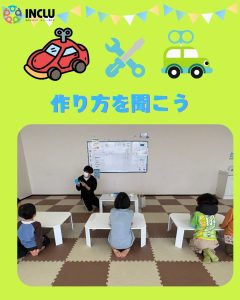 今回、那珂教室では製作イベントとして、「輪ゴムで動くくるま」作りに挑戦しました🌟身近な材料を使いながら、仕組みを理解し、最後は実際には知らせることを目標に取り組みました。