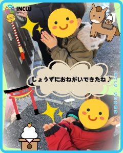 「何をお願いしようかなぁ❓」未就学児のお友達は職員と一緒に手を合わせて上手に参拝することが出来ました👏