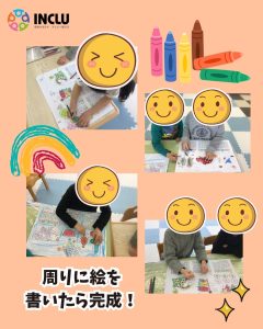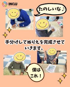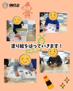 活動では、「どの塗り絵にしようかな?」「ここに貼る!」などそれぞれの意見や思いが溢れました。好きな色や季節を選んだり、イラストを好きなように塗り絵したりして楽しみながら取り組みました。数字をかく担当の子ども達もマスからはみ出ないように丁寧にかいていきます😀