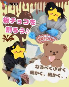 まずはチョコを溶かすために、みんなでチョコを割ろう