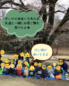 「一緒にお弁当食べよう🍱」「名前教えて?」などと会話も弾み、桜の木の下で笑顔のランチタイムとなりました🌸