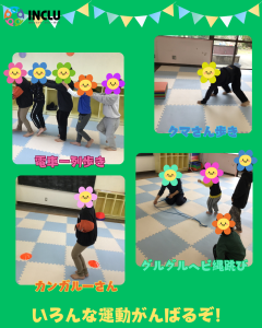 • クマさん歩き: 全身を使ってバランス感覚を養います。
