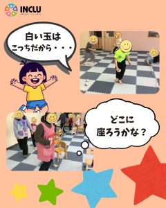 椅子取りゲーム🎵では、流れる音楽に合わせて椅子の周りをまわったり、椅子の取り合いをしたりとルールをしっかり守ってゲームを行いました。ボール集めゲームでは那珂教室のお友達と混合でチーム分けを行い対決したりして、元気いっぱい体を動かしました🚩˝