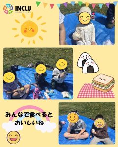 お昼には出来上がったご飯をもって、公園でピクニックをしました。