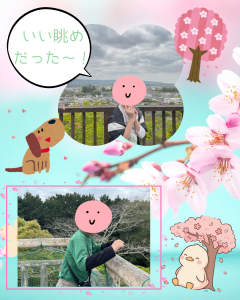 高台からは常陸太田市の町並みが一望でき、遠くの郵便車が小さく見えたり、お友だちが通っている幼稚園が見えたり、発見を楽しんでいました✨初めて来たお友だちもいたので、良い景色に心動かされていました😊八重桜がきれいに咲いて、みんなですてきな写真が撮れました📸虫や草花を見つけ春の訪れを満喫することができました🌸
